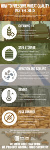 Below you will find a visual infographic with the key steps to preserve wheat quality in steel silos.