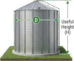 The larger the diameter and the height of the silo, the greater the available volume for grain storage.