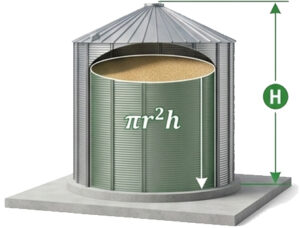 The volume of a cylindrical silo is calculated using the cylinder volume formula: